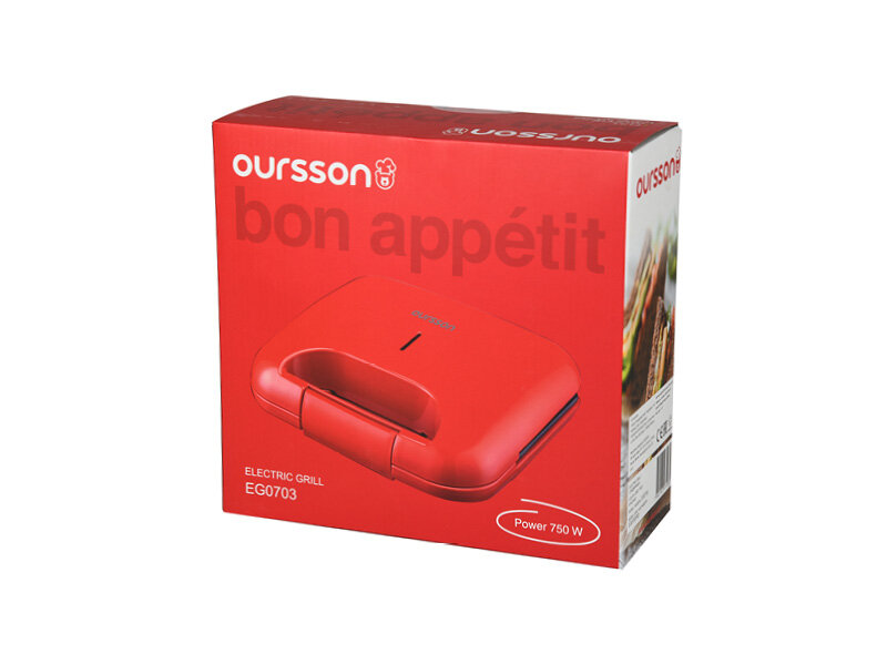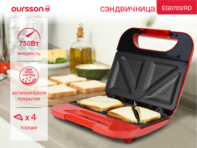 Сэндвичница Oursson EG0703/RD, 750Вт, 4 порции, антипригарное покрытие