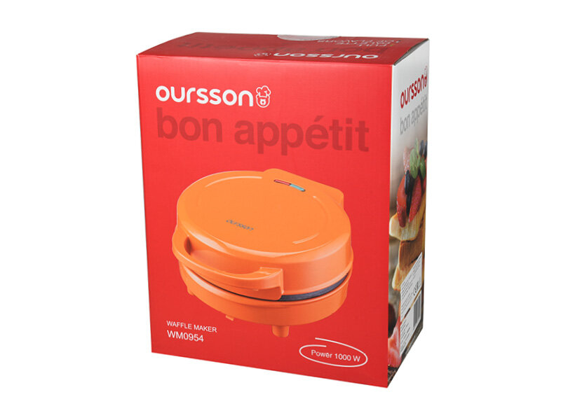 Электрическая вафельница Oursson "WM0954/OR", мощность 1000Вт, цвет оранжевый