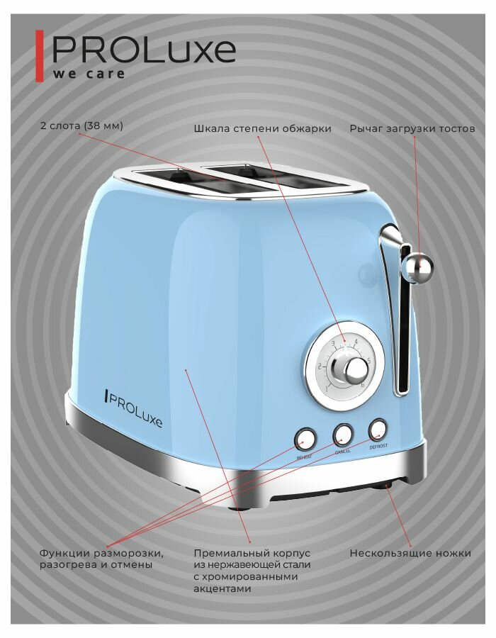 Тостер электрический PROLuxe Stylish , голубой, PL-TOBLU01 интересное: