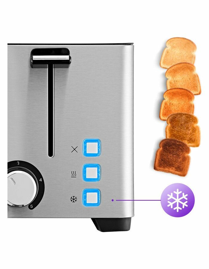 | Дополнительные функции | автоматическое центрирование тостов, кнопка отмены, регулировка степени обжаривания |
