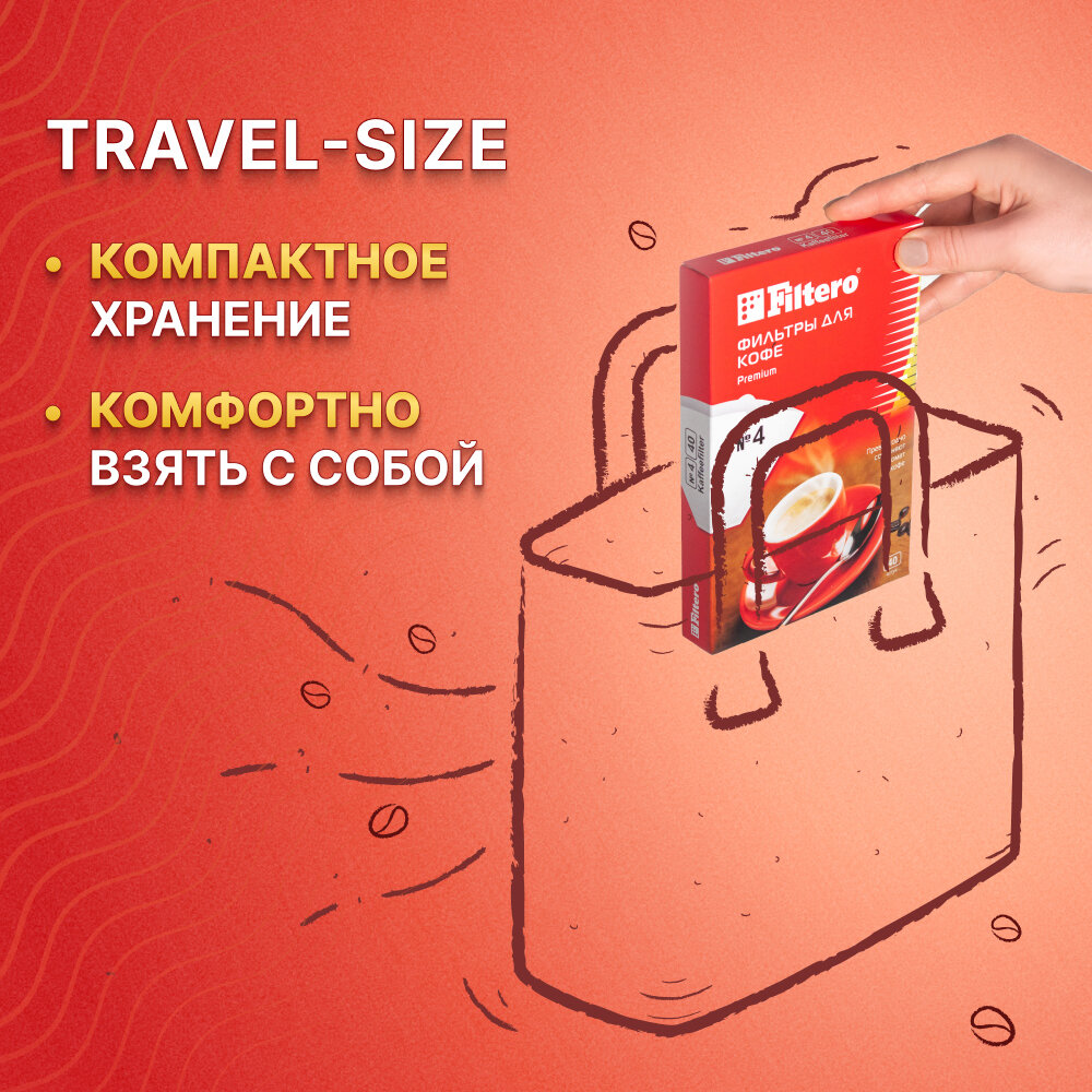 Комплект фильтров для кофе, кофеварки и кофемашин Filtero Premium №4, белые, 40штук