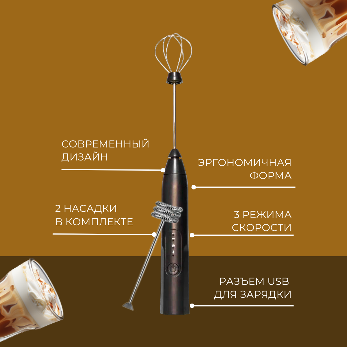 Купить Беспроводной капучинатор для молока с USB зарядным устройством и двумя венчиками, 3 режима (черный)