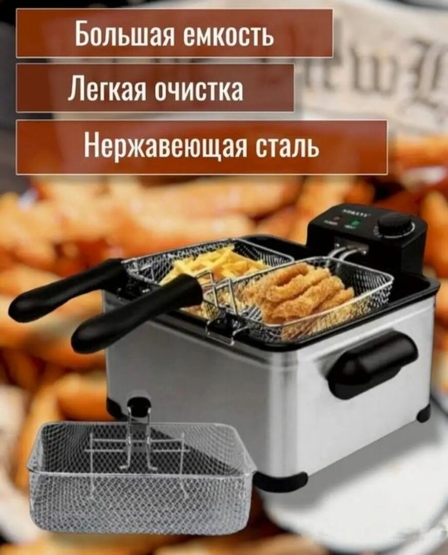 Фритюрница электрическая со съемной сеткой для картофеля 5л. 3200Вт интересное: