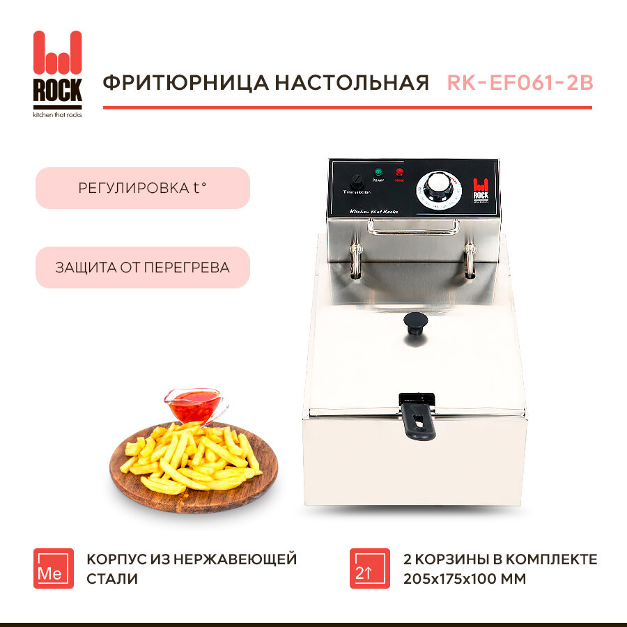 Фритюрница электрическая Rock Kitchen RK-EF061-2B, настольная электрофритюрница интересное: