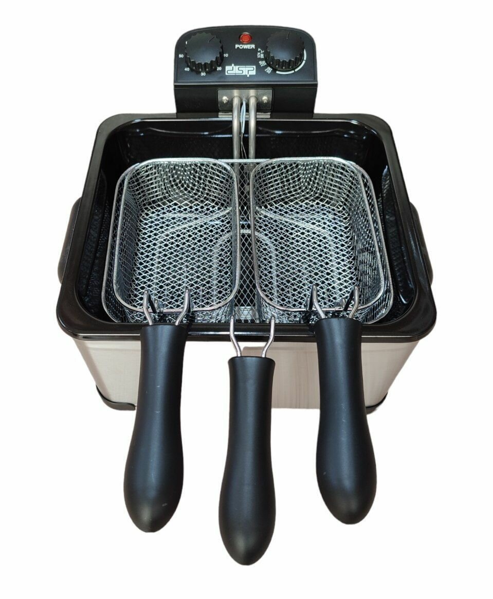 Профессиональная электрическая фритюрница. Фритюрница серебристый 5Л, 3 корзины, 2000 ВТ интересное: