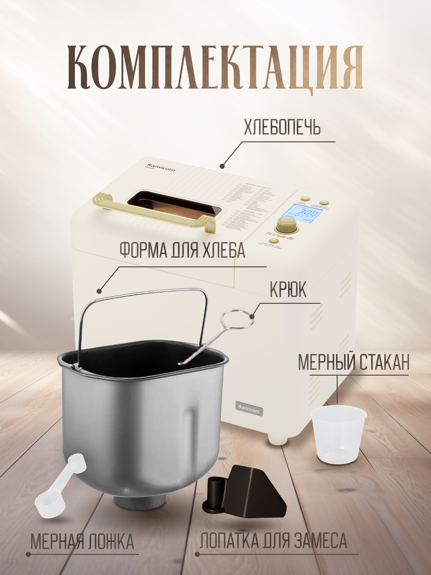 Купить Хлебопечка Ramicom, модель RB8100 с замесом теста автоматическая, 23 программы с поддержанием температуры