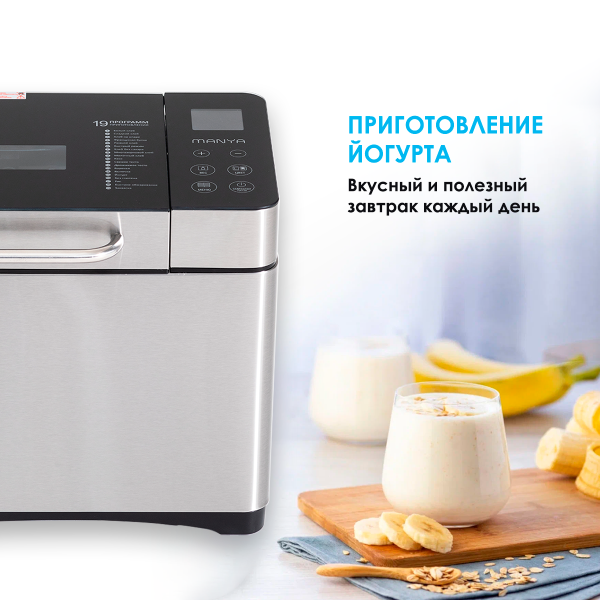 Хлебопечка с замесом теста 15 программ MANYA BM-M102 автоматическая с функцией йогурт