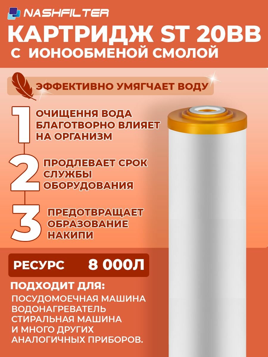 Картридж для фильтра воды умягчающий с ионообменной смолой ST 20BB интересное: