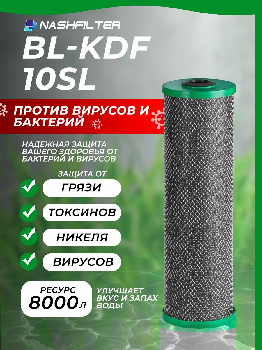 Картридж для фильтра воды с прессованным бактерицидным углём BL-KDF 10SL интересное:
