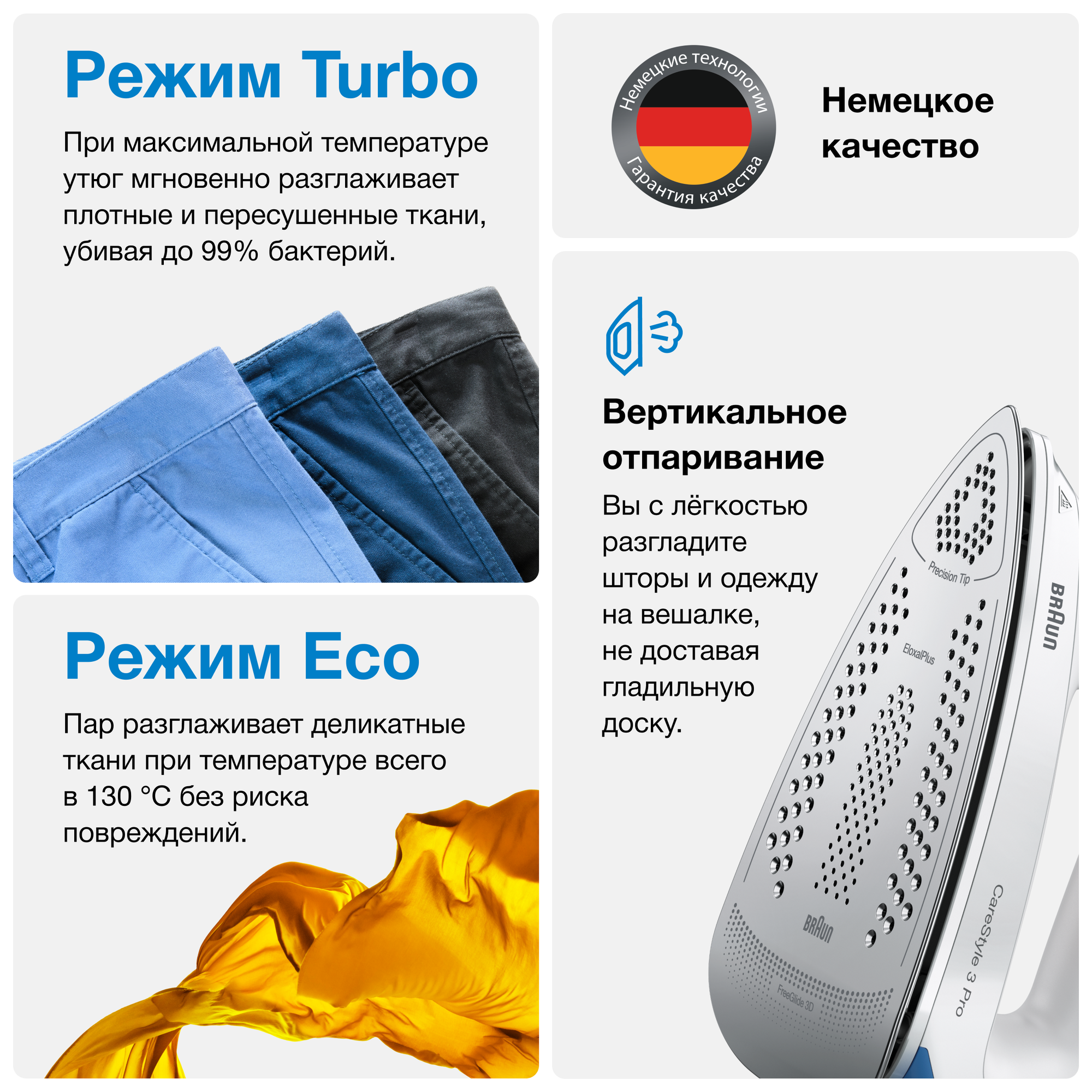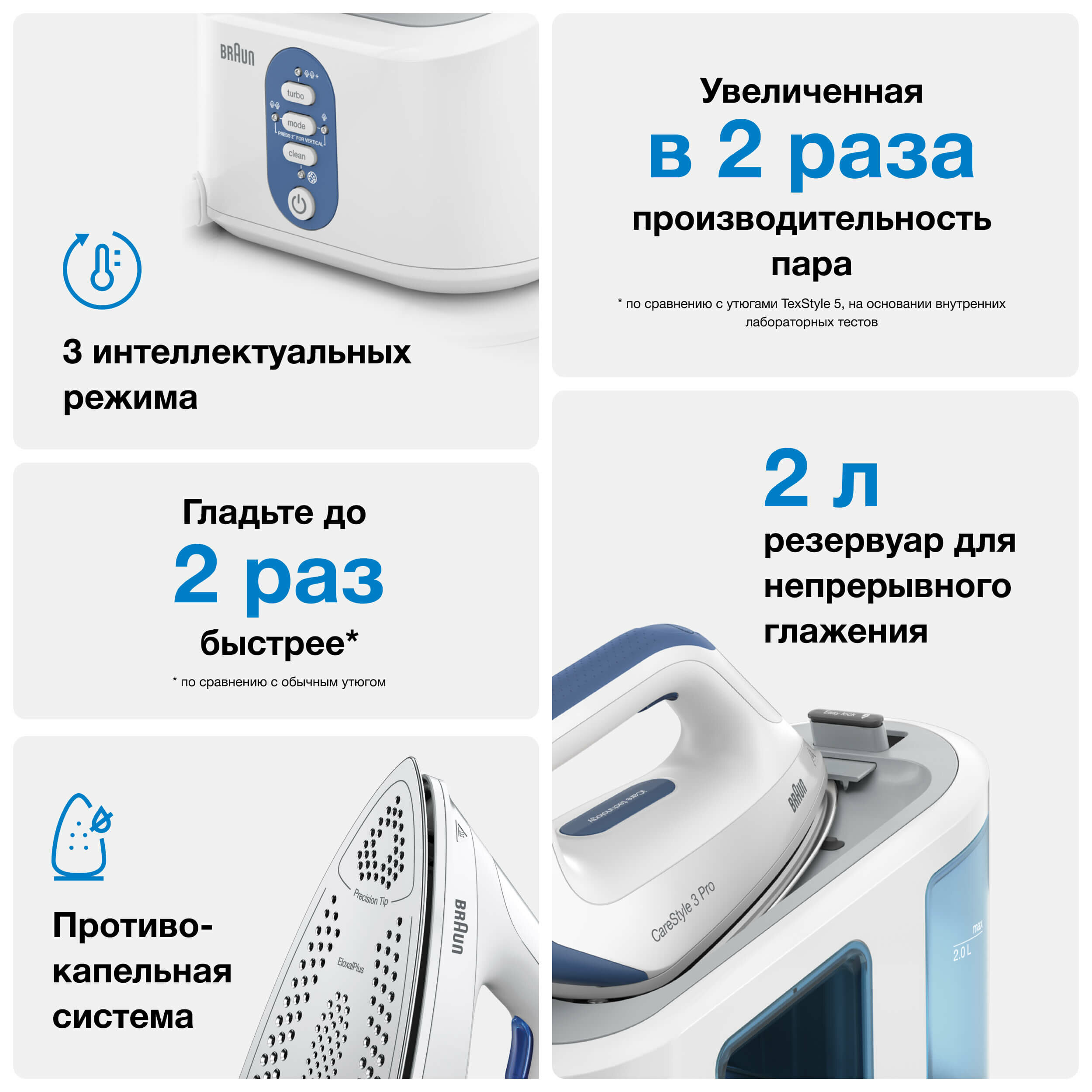 Braun Утюг IS3157BL Гладильная система, 2400Вт, 125 г мин, белый