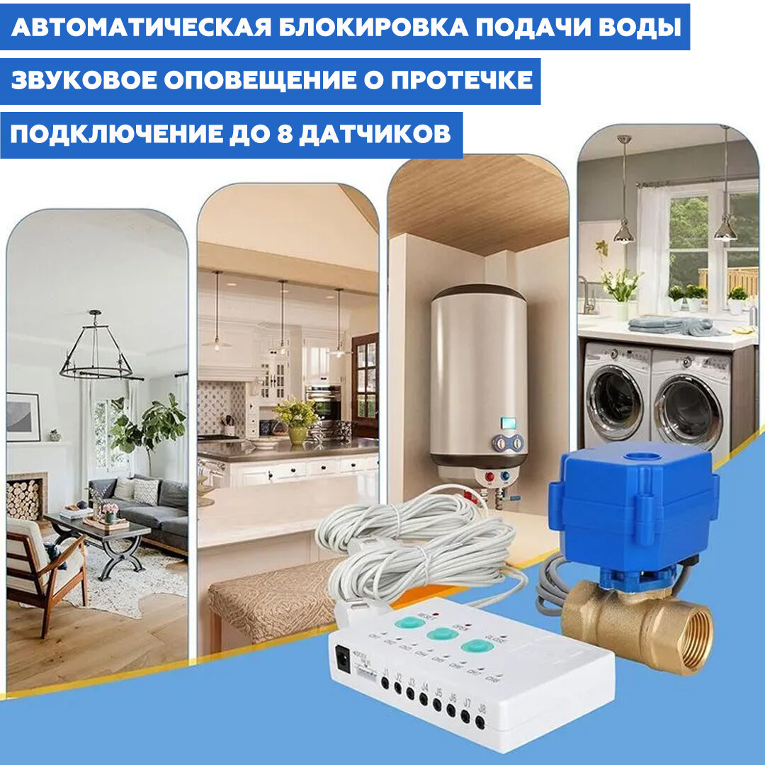 Система защиты от протечек воды Rixet 1/2", кран с электроприводом, 4 датчика, панель управления интересное: