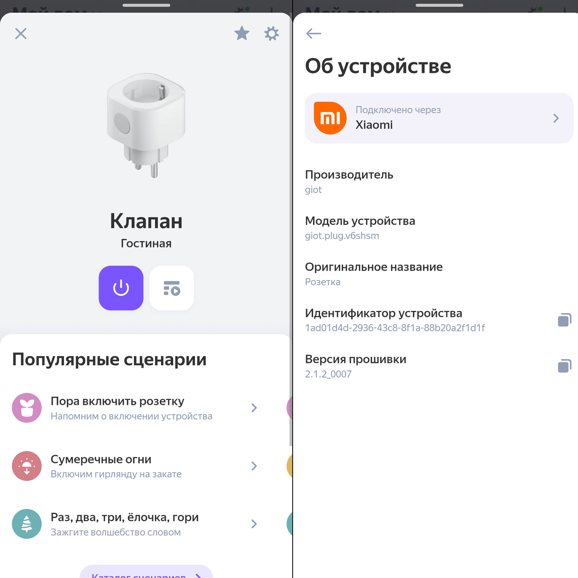 | Экосистема Умного дома | Xiaomi Mi Home / Умный дом Яндекса |