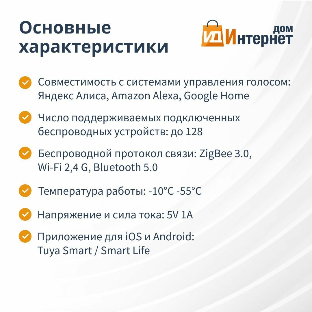 | Экосистема Умного дома | Amazon Alexa / Google Home / Tuya Smart |