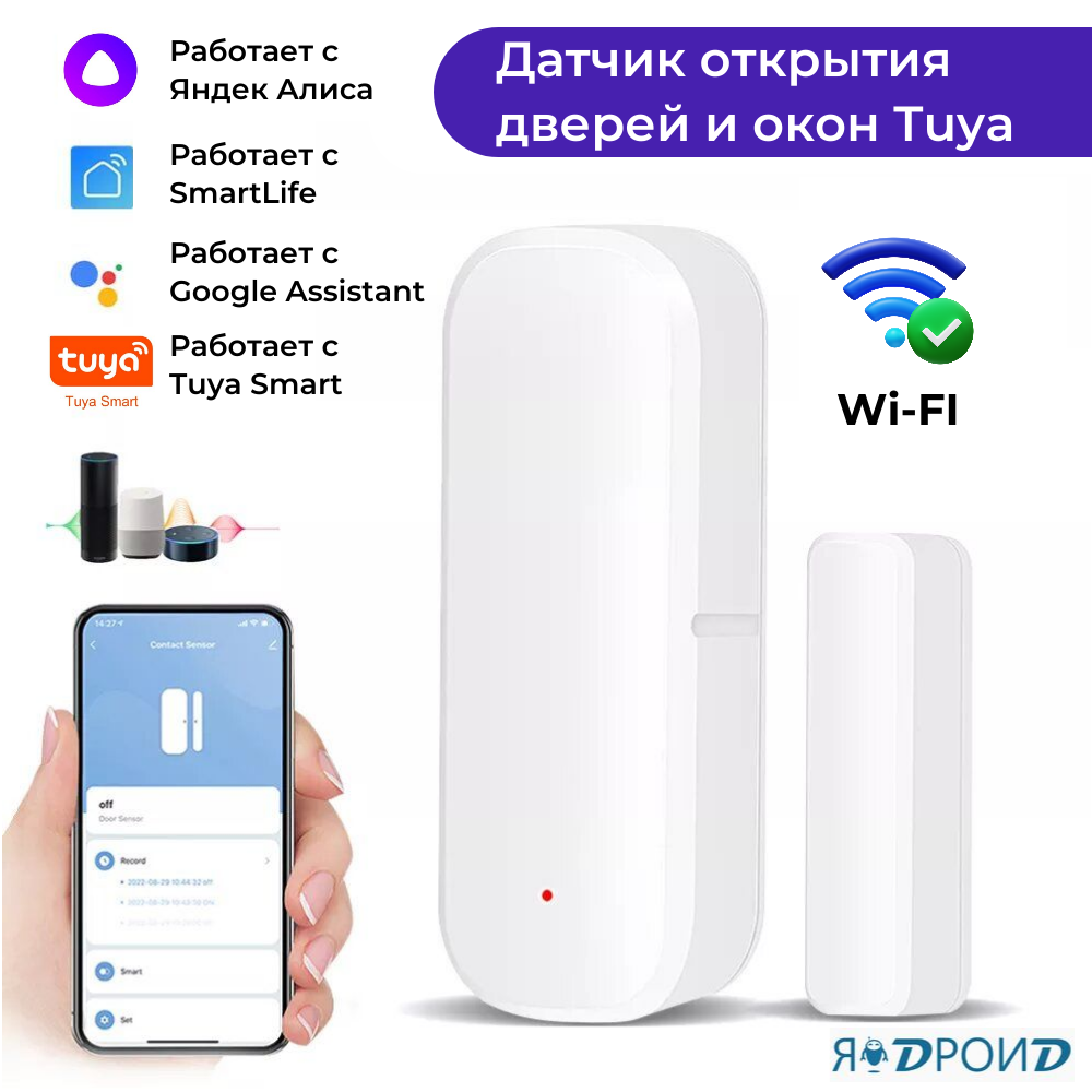 Умный Wi-Fi датчик открытия двери и окна Tuya, безопасный контроль, умная сигнализация. Работает с приложениями Smart Life, Яндекс Алиса. интересное: