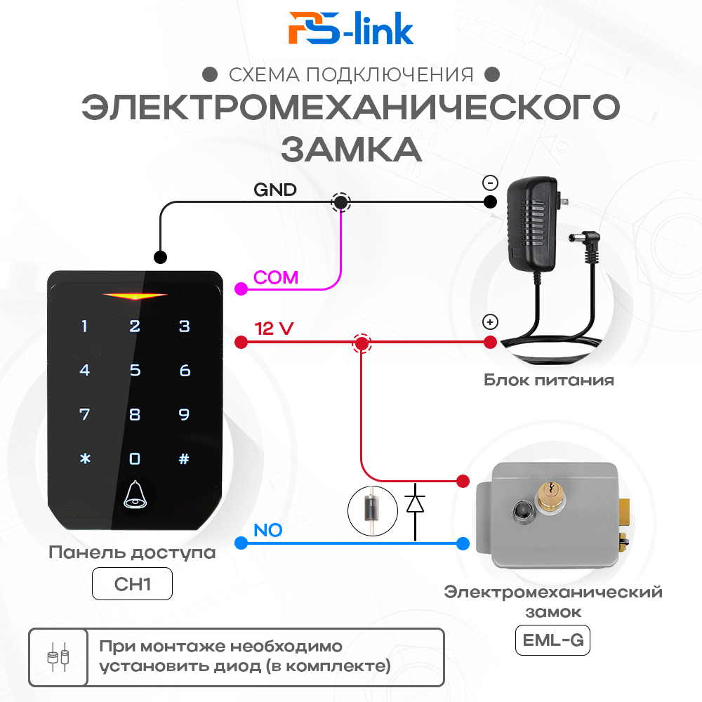 Комплект СКУД на одну дверь PS-link CH1-G WIFI с электрическим замком интересное: