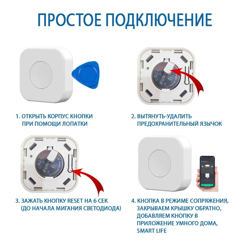 | Подробная комплектация | Беспроводная кнопка - 1 шт. Элемент питания C2450 - 1 шт. Стикер для настенного монтажа - 1 шт. Пластиковая лопатка для открытия корпуса - 1 шт. Документация |