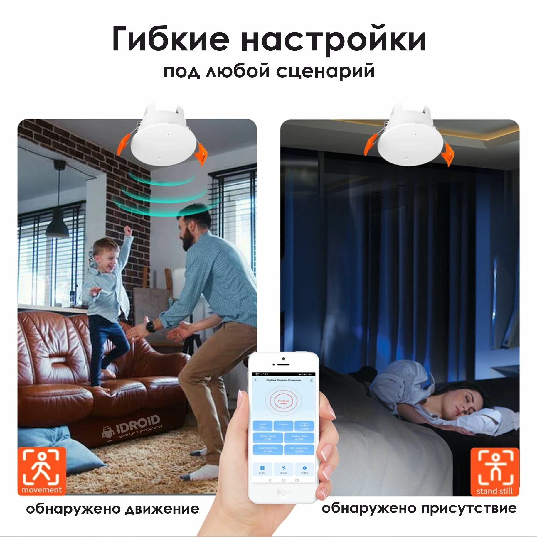 | Подробная комплектация | Умный датчик присутствия Tuya, руководство пользователя |