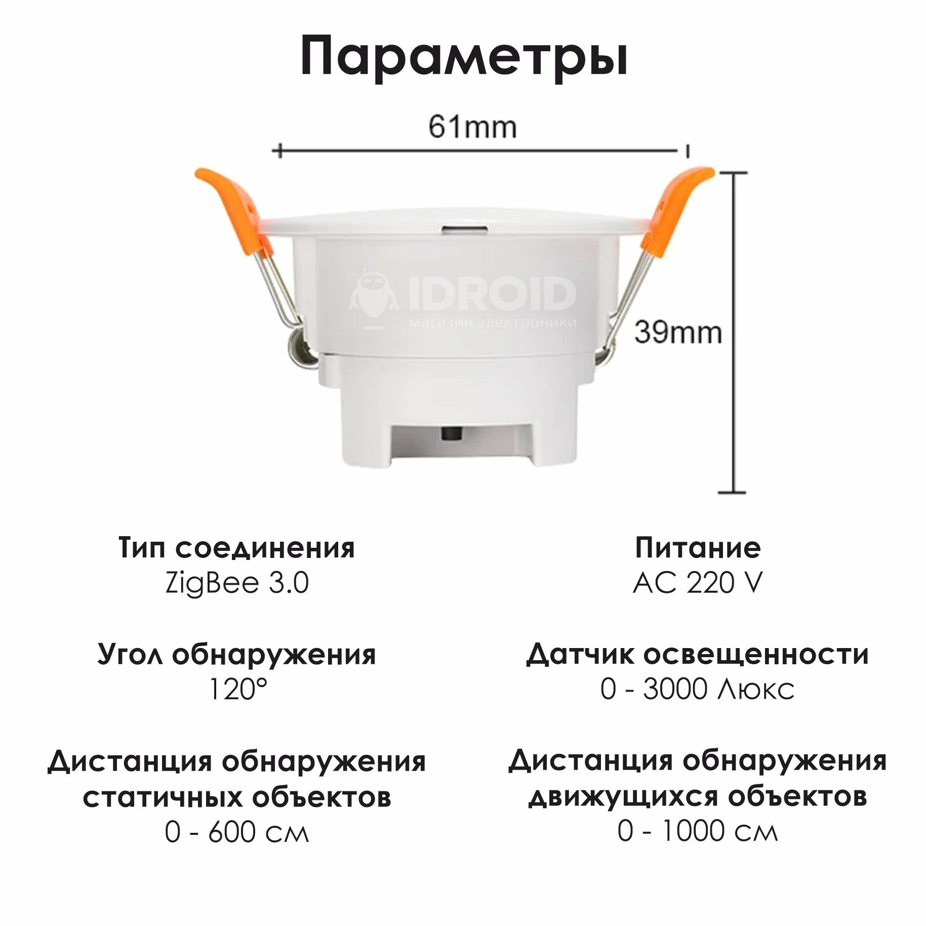 | Дополнительная информация | Протокол связи ZigBee 3.0, размеры 61х61х39 мм, диапазон температур от -10 С до 45 С |