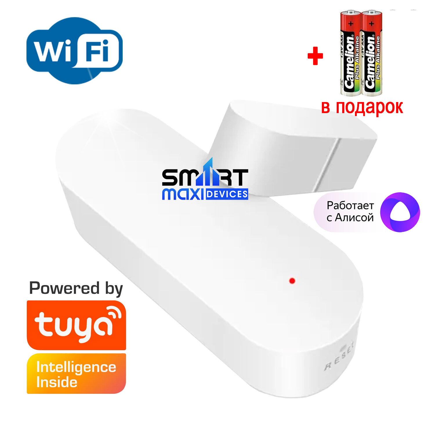 Купить Умный Wi-Fi беспроводной датчик открытия двери Tuya/ окна для умного дома с дистанционным управлением с батарейками в комплекте