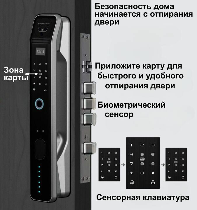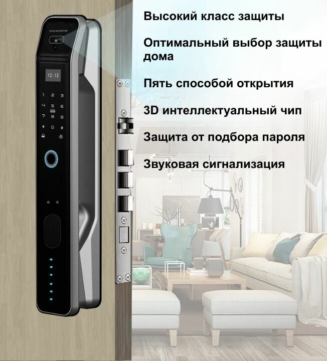 Умный замок "SMART LOCK" с функцией распознавания лица. Русский язык интересное: