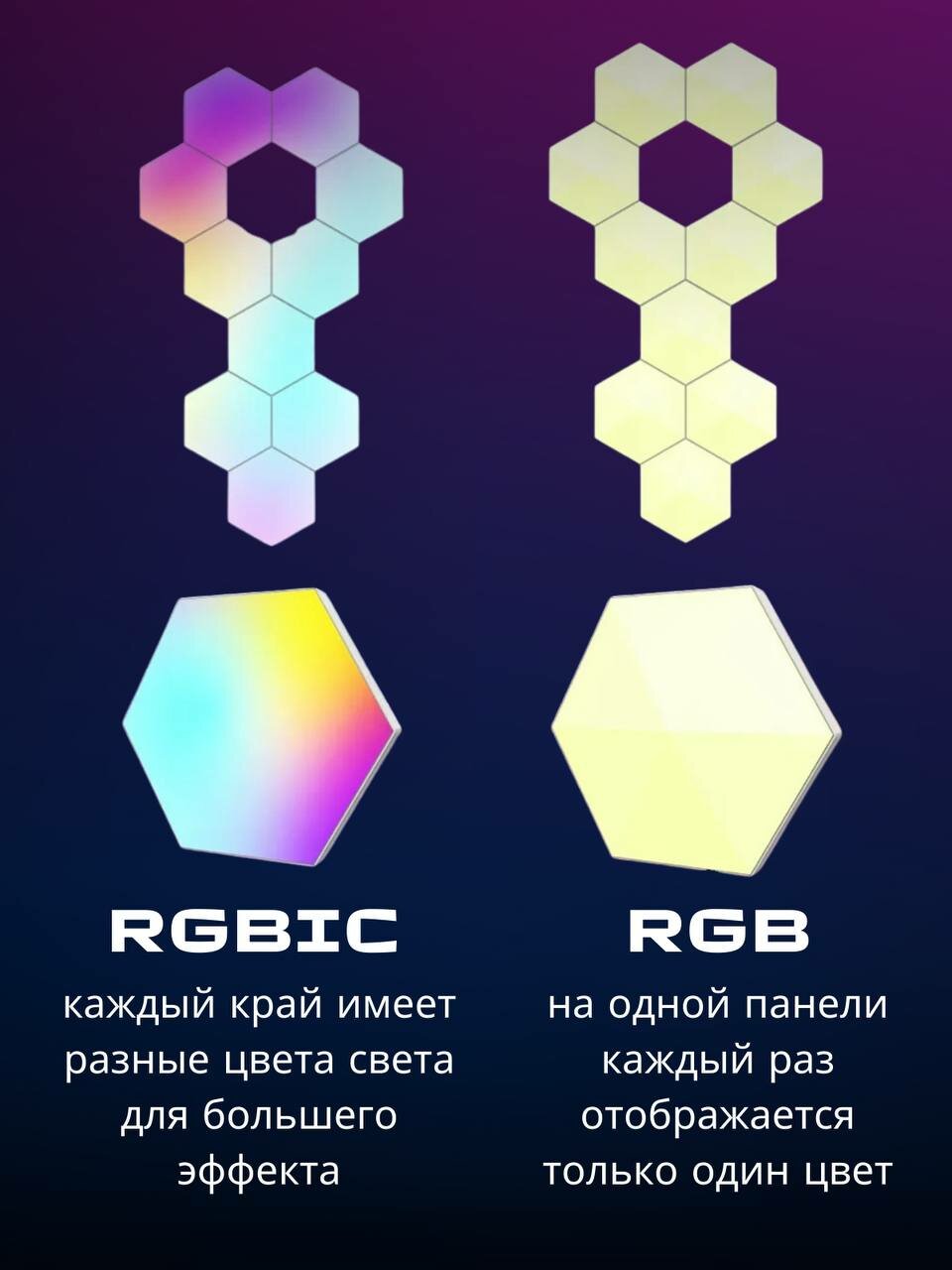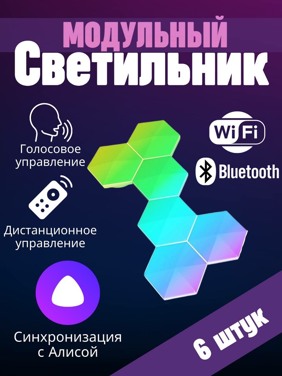 Умный RGB-IC светильник соты с Wi-Fi управлением и голосовым помощником Алисой, 6 шт интересное: