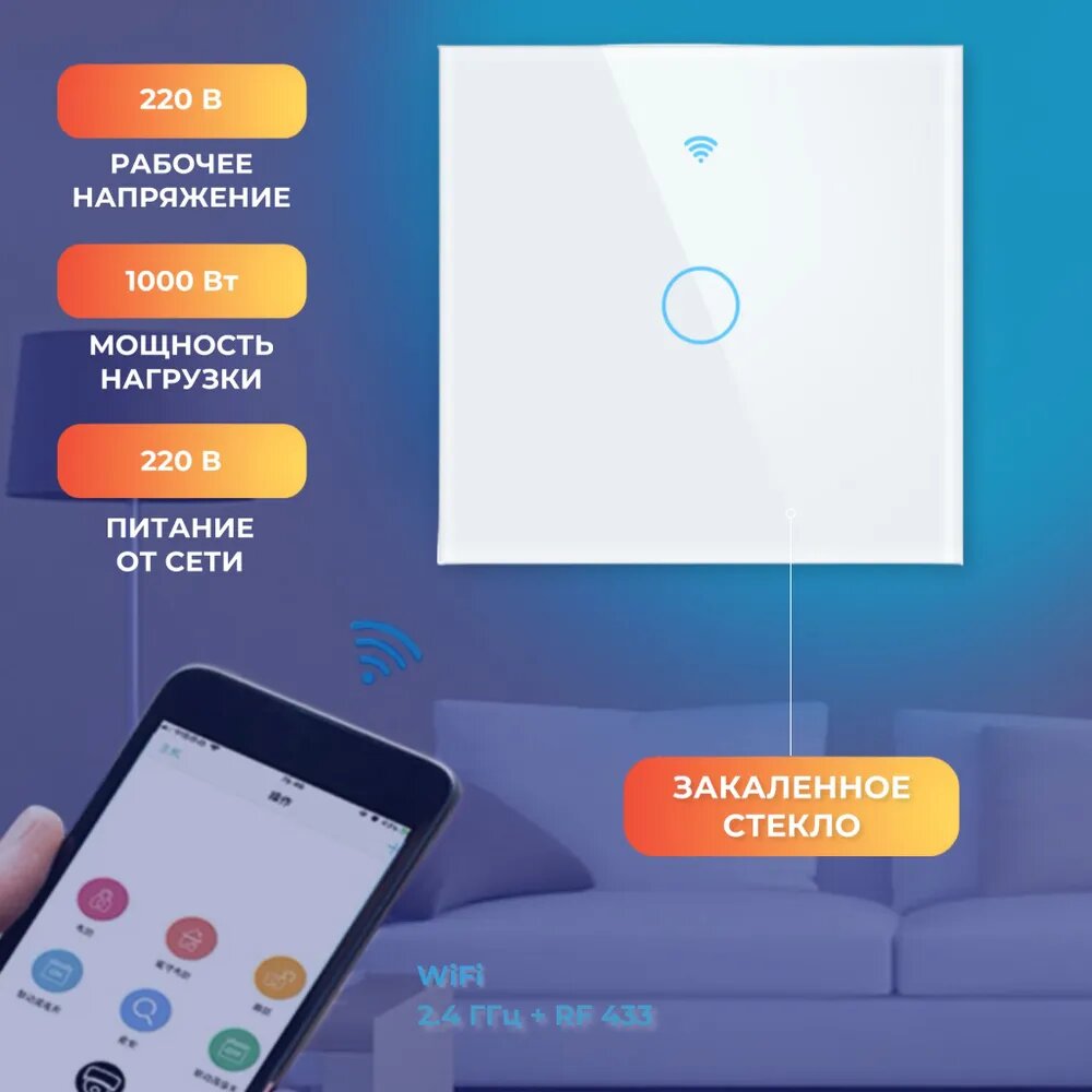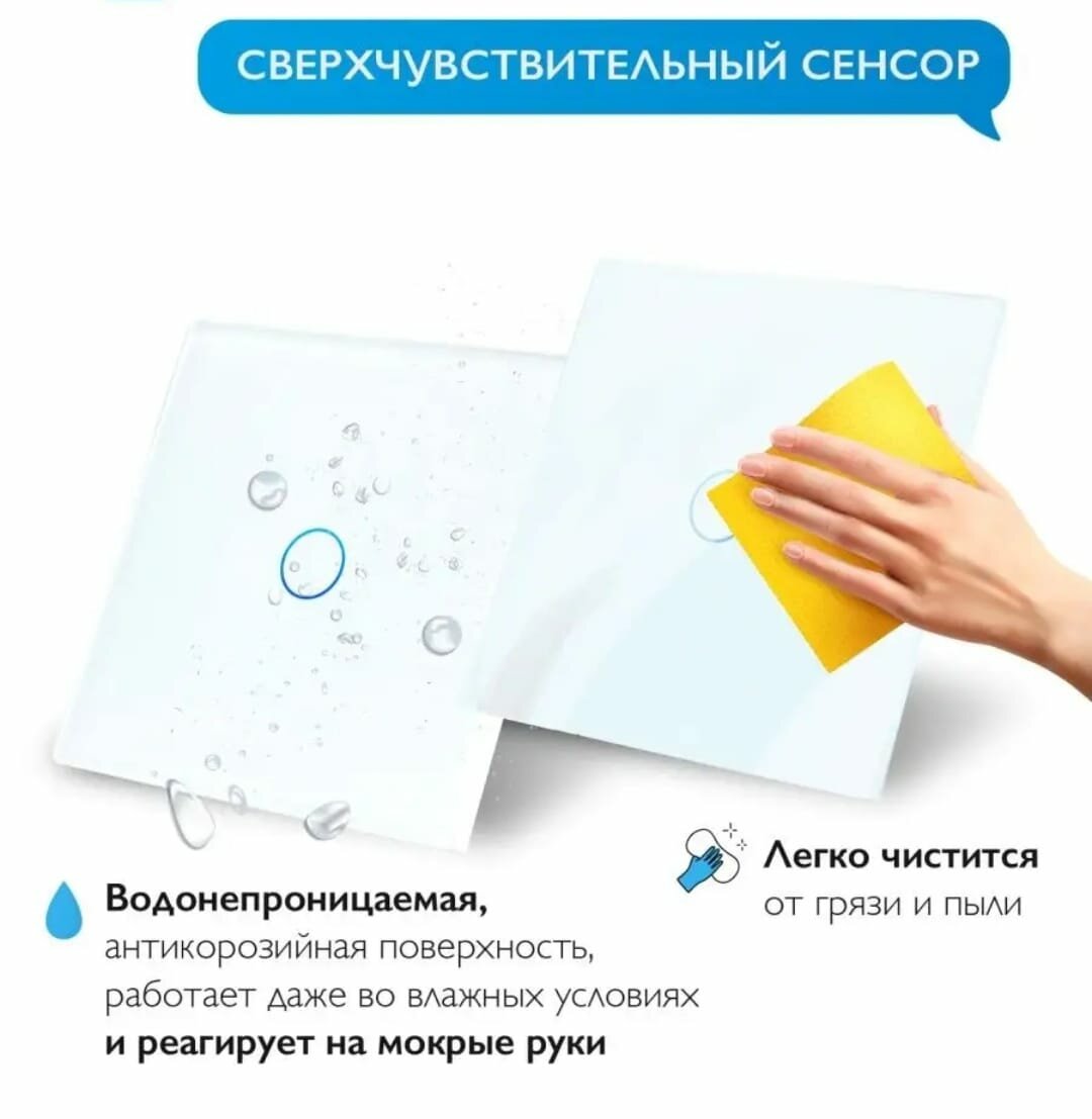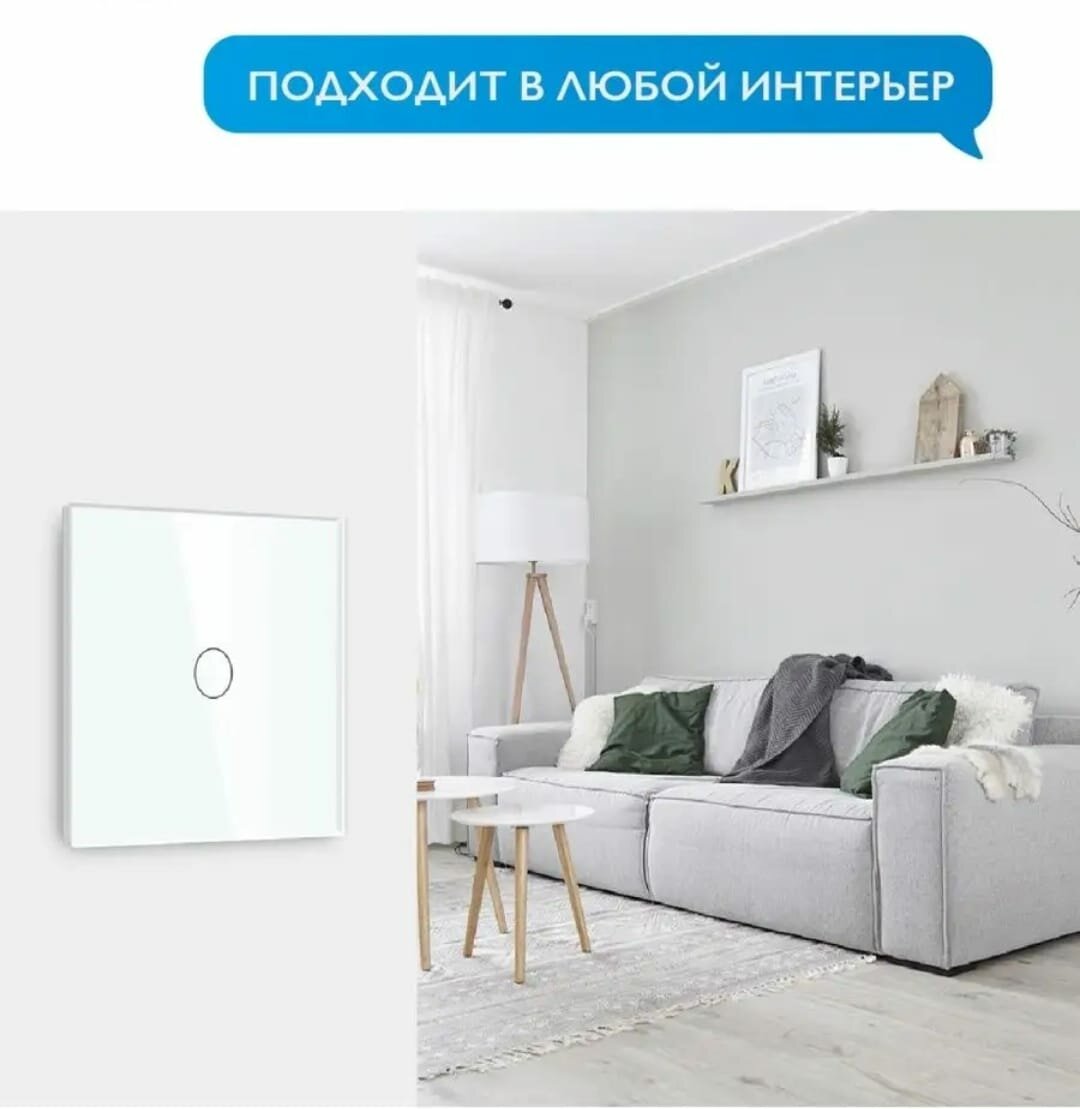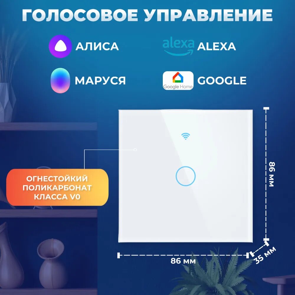 Умный Сенсорный выключатель Wi-Fi с Алисой 2в1 без нуля и С нулем на 1000W на 1 группу света Tuya Белый (Комплект 2шт.) интересное: