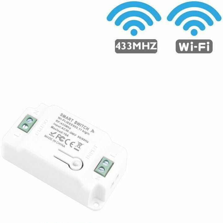 Купить Комплект - Беспроводной выключатель 1-канальный RF 433Mhz белый SRF1W + Радиореле с поддержкой Wi-Fi D01W