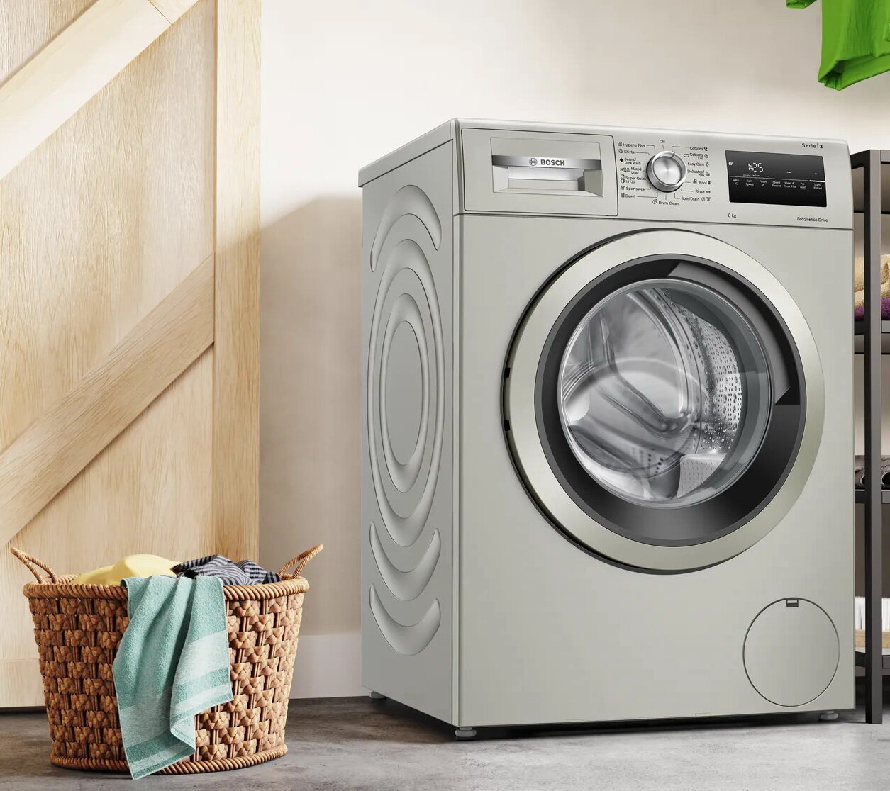 BOSCH Стиральная машина BOSCH 84.8x59.8x60, фронтальная загрузка, 8 кг, 1200 об/мин,серый металлик, EcoSilenceDrive, панель управления приборов на английском языке