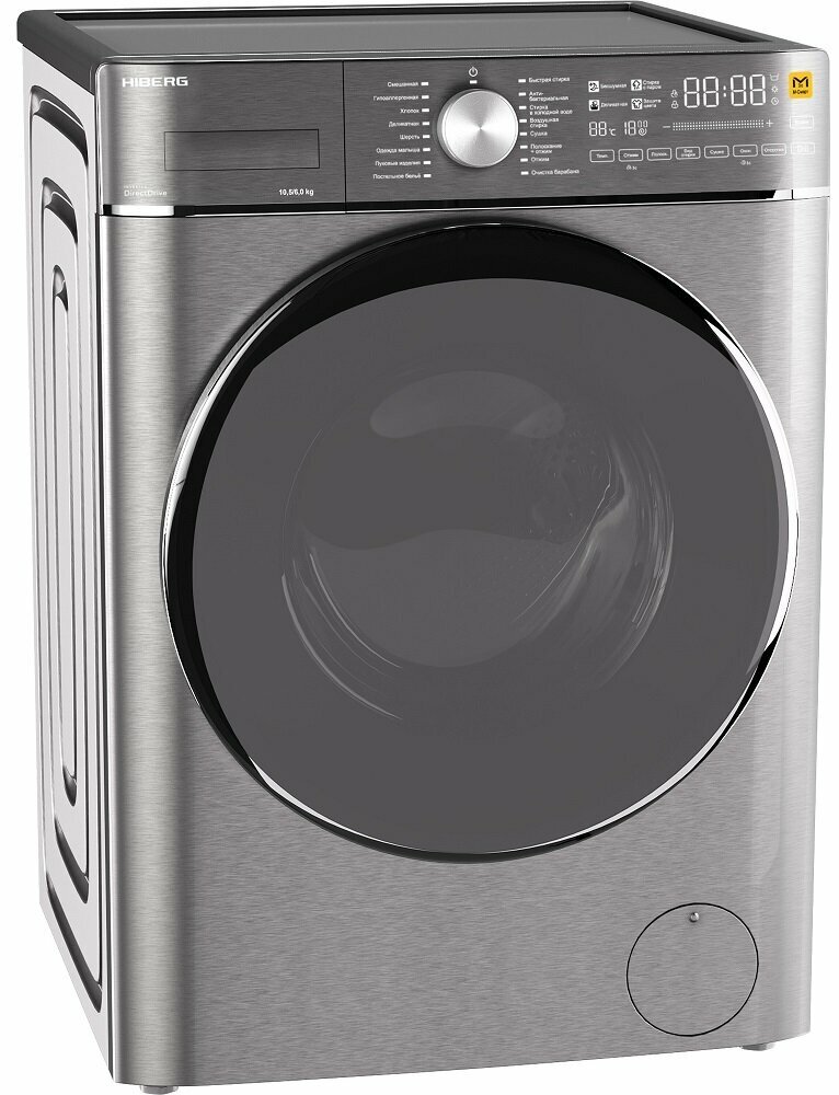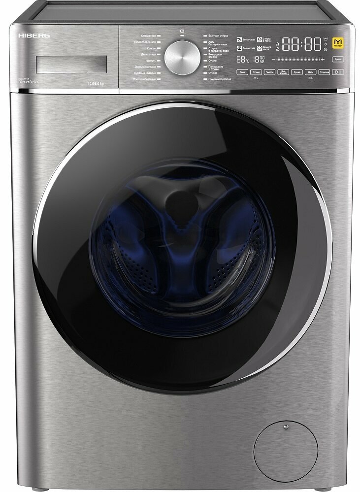 Стиральная машина с сушкой HIBERG i-DDQ8 - 10614 Ss, Inverter, Прямой привод DD, М-Smart - стирка в одно касание, Озонирование, Подсветка барабана, 10,5 кг, 1400 оборотов, 6 кг сушка