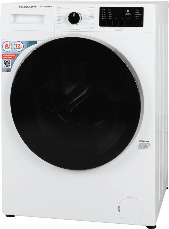 с/м kraft kf-mds 12146w /бел.+люк черн., 60*59, 12кг, 1400об., эл. упр.,диспл., инвертор/