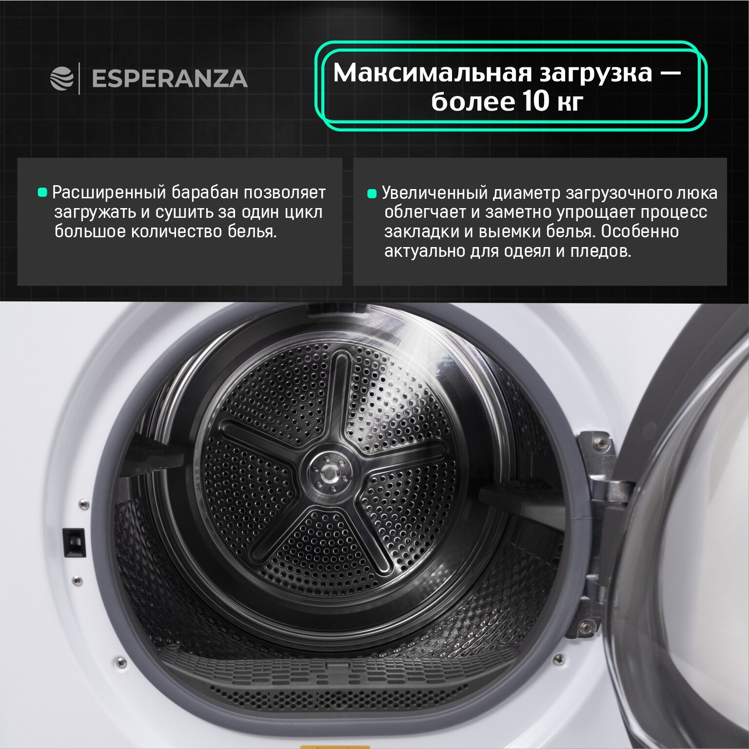 Сушильная машина ESPERANZA DMFP1063IBD13, тепловой насос, 120 л, датчик сушки, инверторный двигатель интересное:
