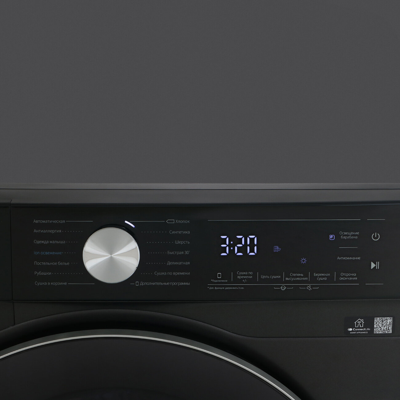 | Режимы / функции | бережная сушка / детская одежда / лёгкая глажка / нижнее бельё / обработка паром / постельное бельё / пропитывание / пуховые изделия / спортивное бельё / удаление аллергенов / ускоренная сушка / шерсть / шёлк |