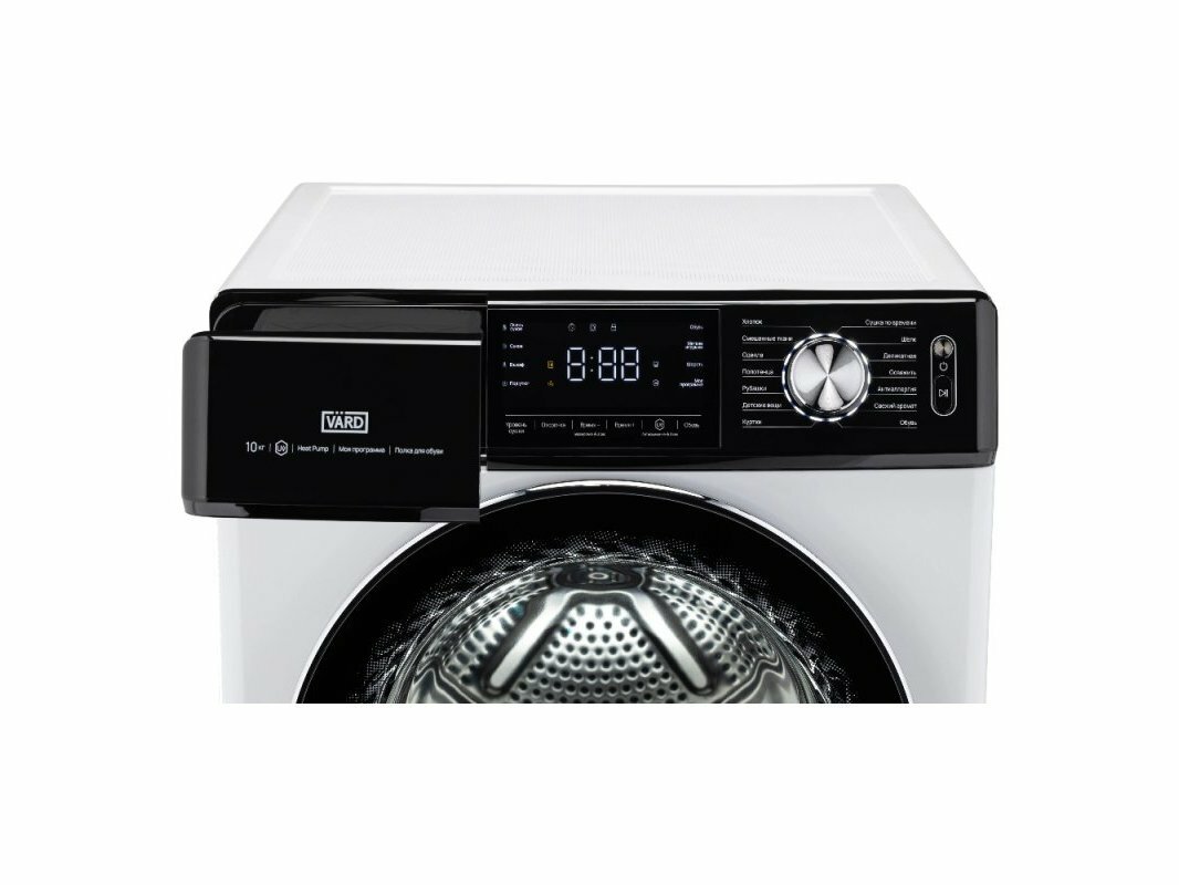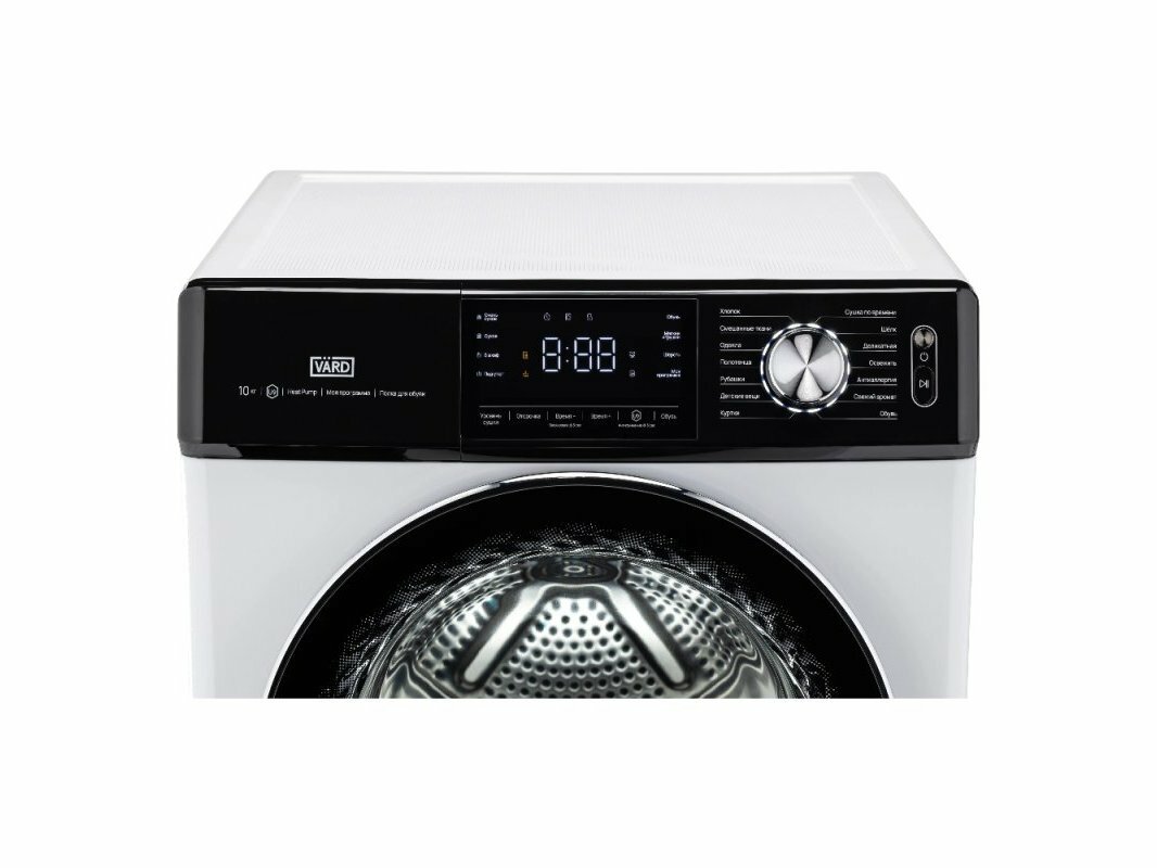 Сушильная машина Vard VTH 61B 10 кг, 11 режимов сушки, ворсовый фильтр, контроль влажности, отложенный старт, предотвращение сминания, сигнал окончания сушки, установка времени завершения стирки