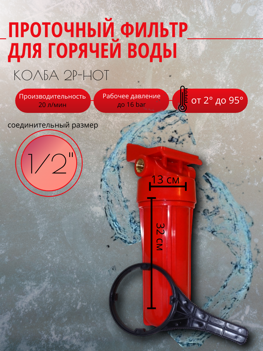 Колба (корпус), фильтр для горячей (до 95 градусов) воды 2Р-HOT (состоит из двух частей), соединительный размер: 1/2 интересное: