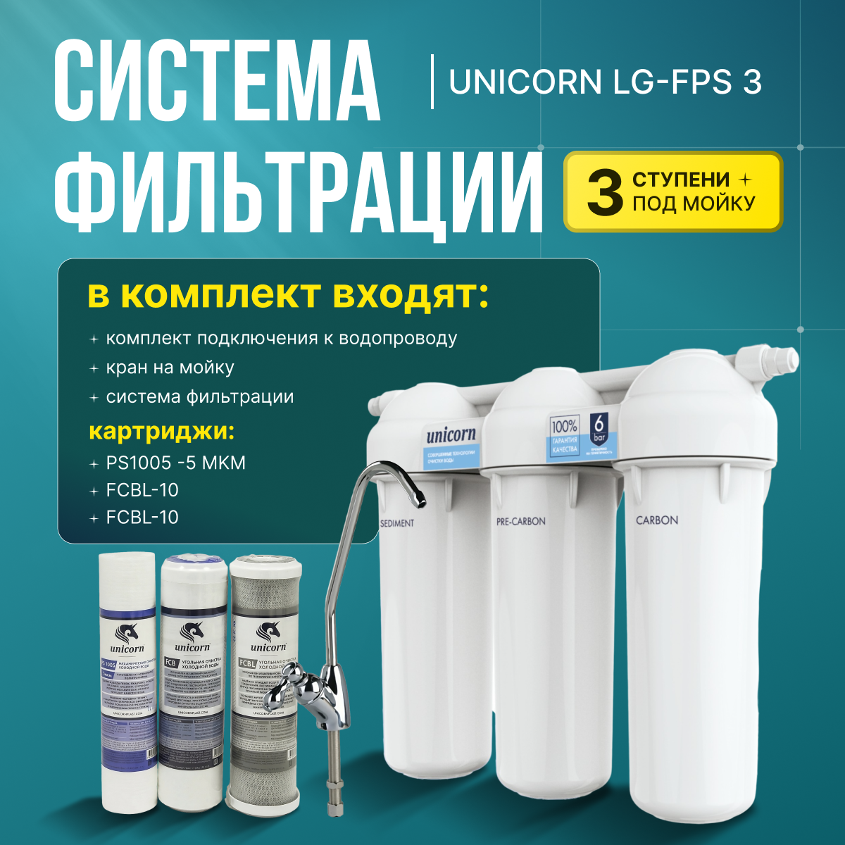 Система фильтрации трехступенчатая под мойку UNICORN LG-FPS 3 интересное: