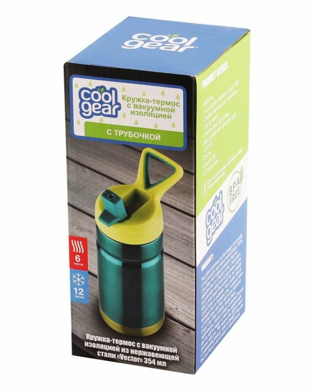 Кружка-термос с вакуумной изоляцией из нержавеющей стали COOL GEAR "Vector" 354 мл AQUAMARINE интересное: