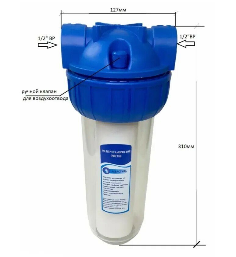 Фильтр для воды колбовый магистральный 1/2"ВР прозрачный+картридж F01-1/2" интересное: