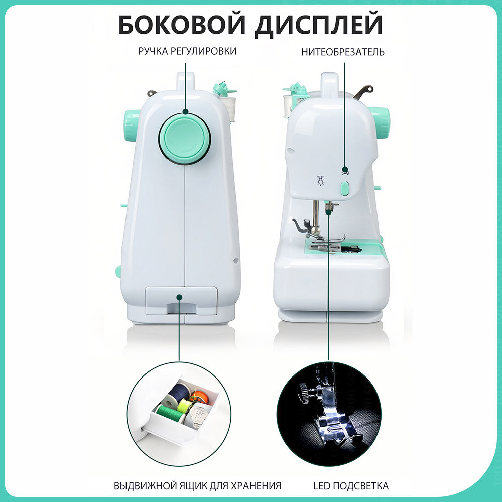 Купить Швейная машина KaringBee FHSM-505G зеленый+набор аксессуаров, электрическая от сети, реверс, регулировка скорости, нитевдеватель и подсветка,12 видов строчек