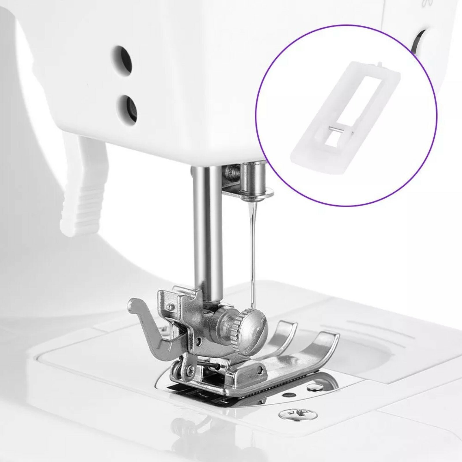 | Подробная комплектация | 3 иглы, 3 шпульки с ниткой, 3 катушки с ниткой, лапка для петель, нитевдеватель, ножная педаль, универсальная прижимная лапка |