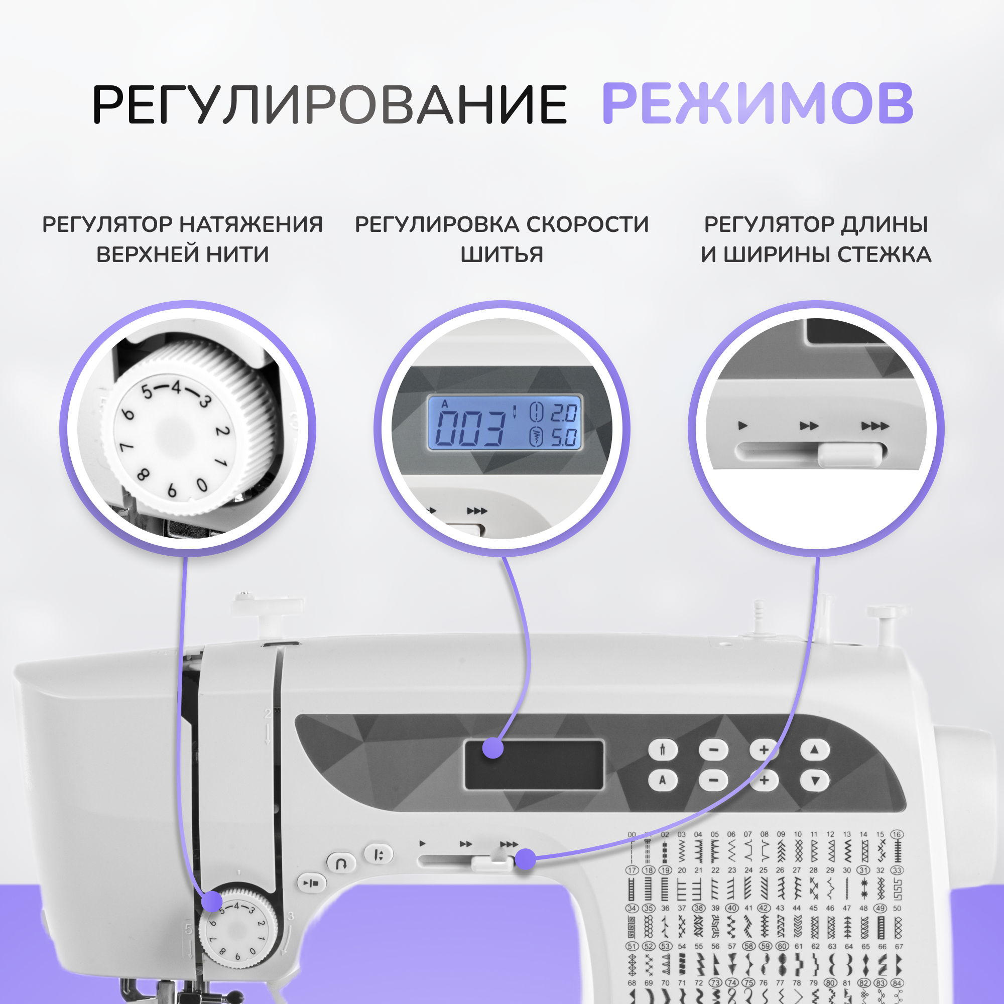 | Регулировка скорости шитья | плавная |