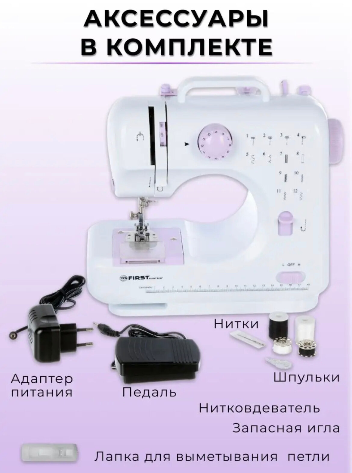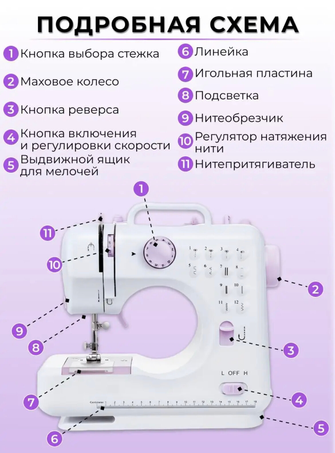 | Дополнительные функции | автоматическое закрепление строчки, кнопка реверса |