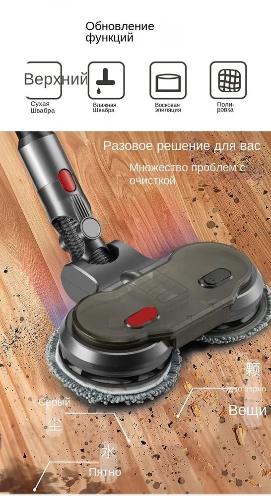 Моторизованная щетка Electric Mop для пола моющая для Dyson V7, V8, V10, V11 (с водяным контейнером) интересное:
