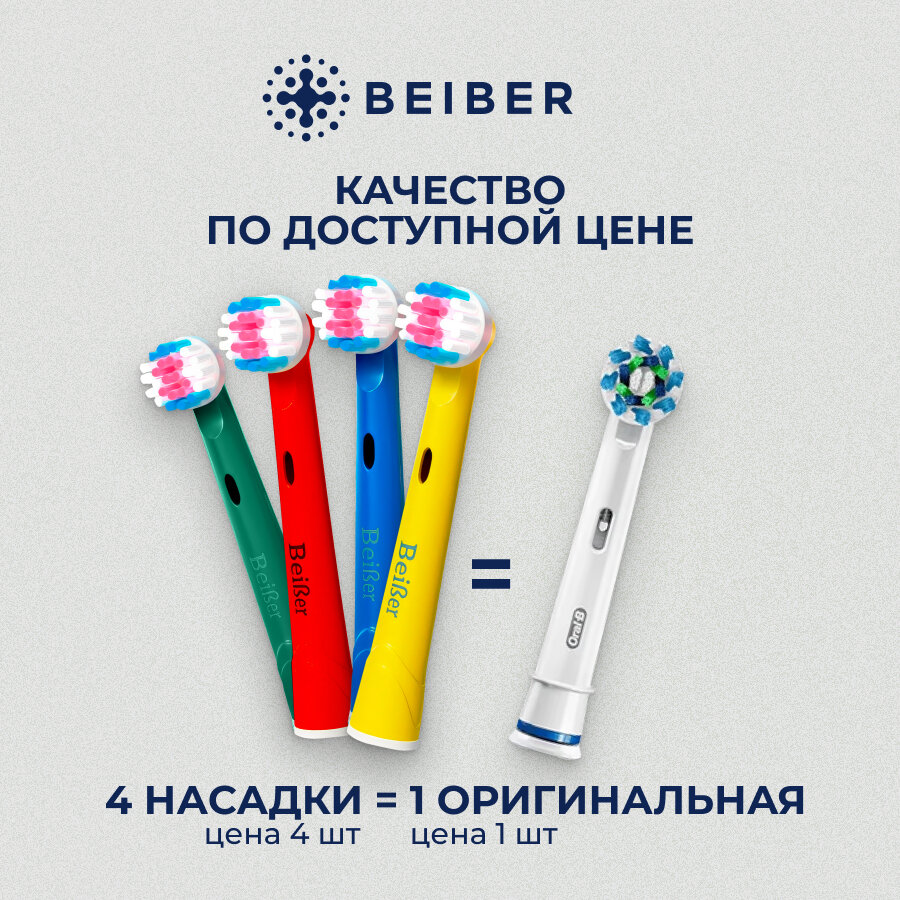 Насадки совместимые с Oral-B BEIBER KIDS для электрических зубных щеток, 4 шт. интересное: