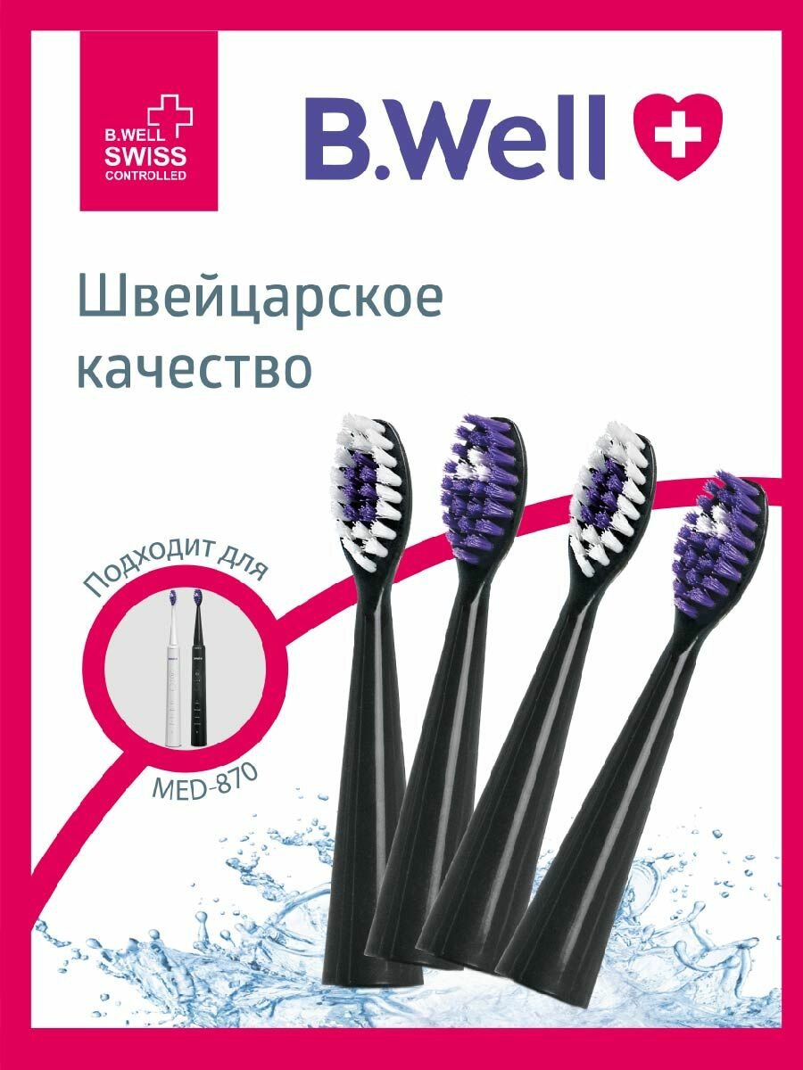 Купить Сменные насадки для электрической звуковой зубной щетки B.Well MED-870, черные, 4 шт