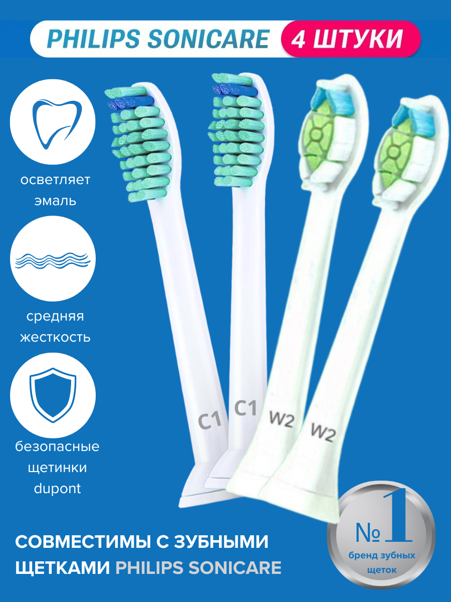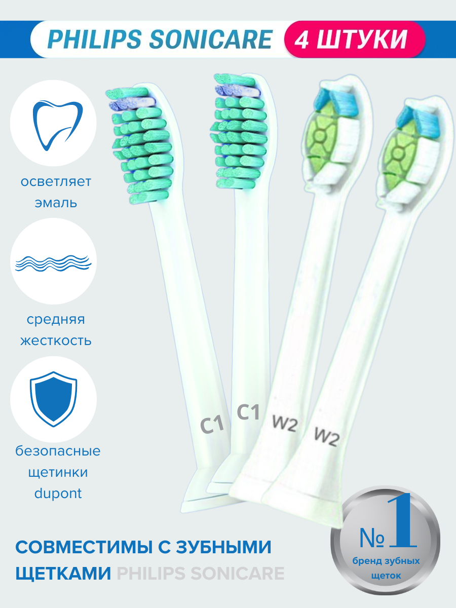 Насадки для зубных щеток Philips Sonicare совместимые W2, 4шт