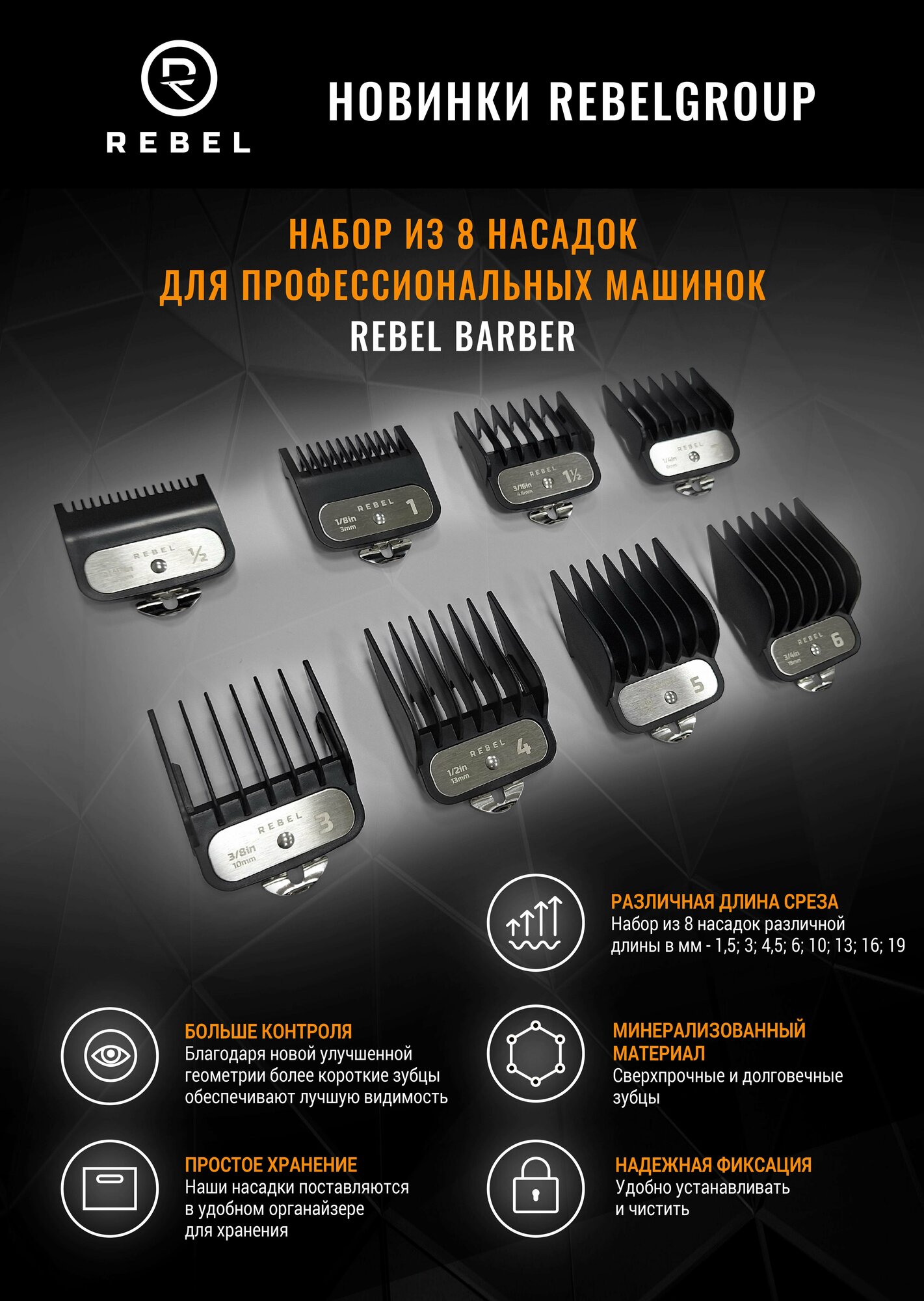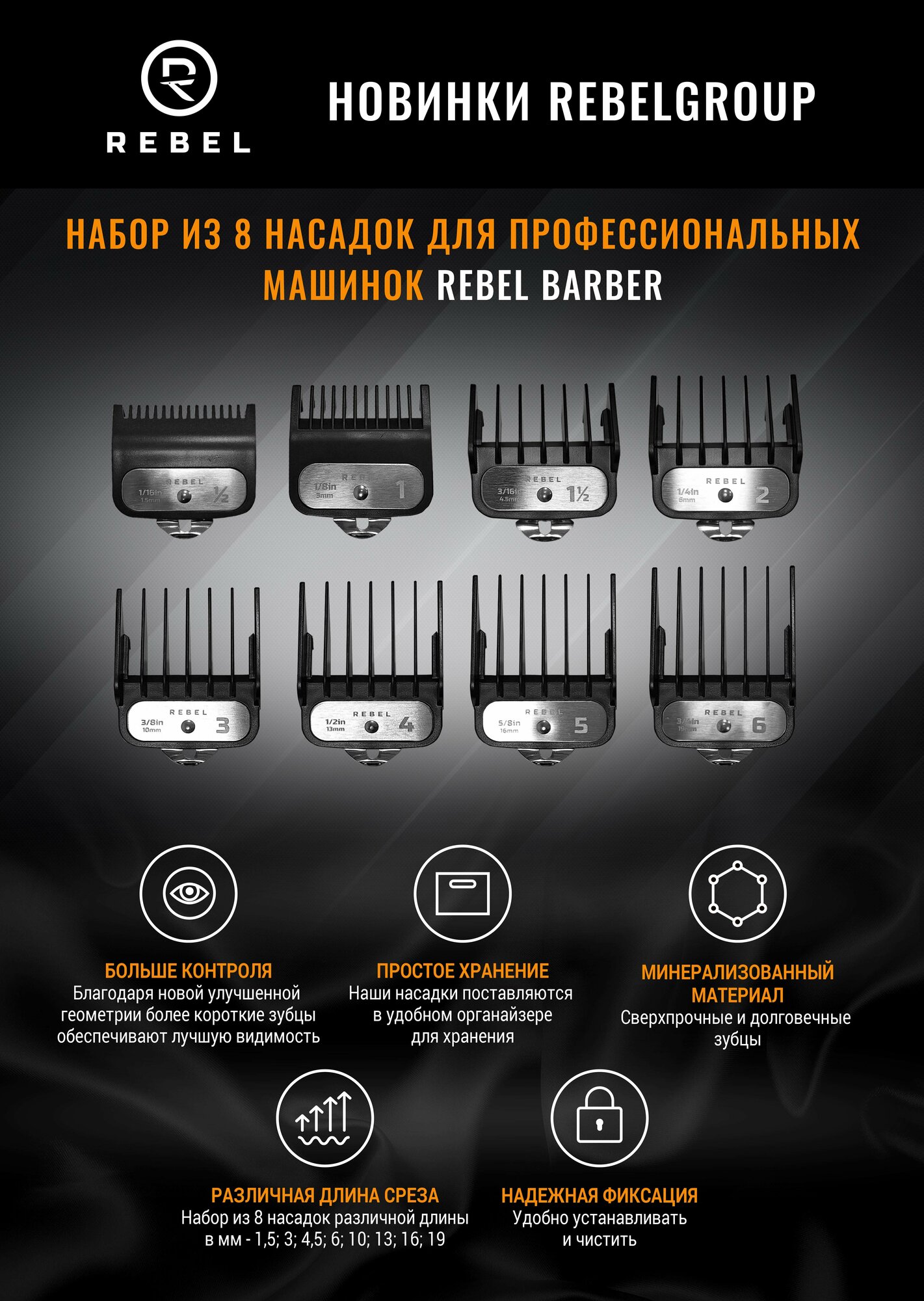 Комплект насадок для профессиональных машинок REBEL BARBER 8 шт. интересное: