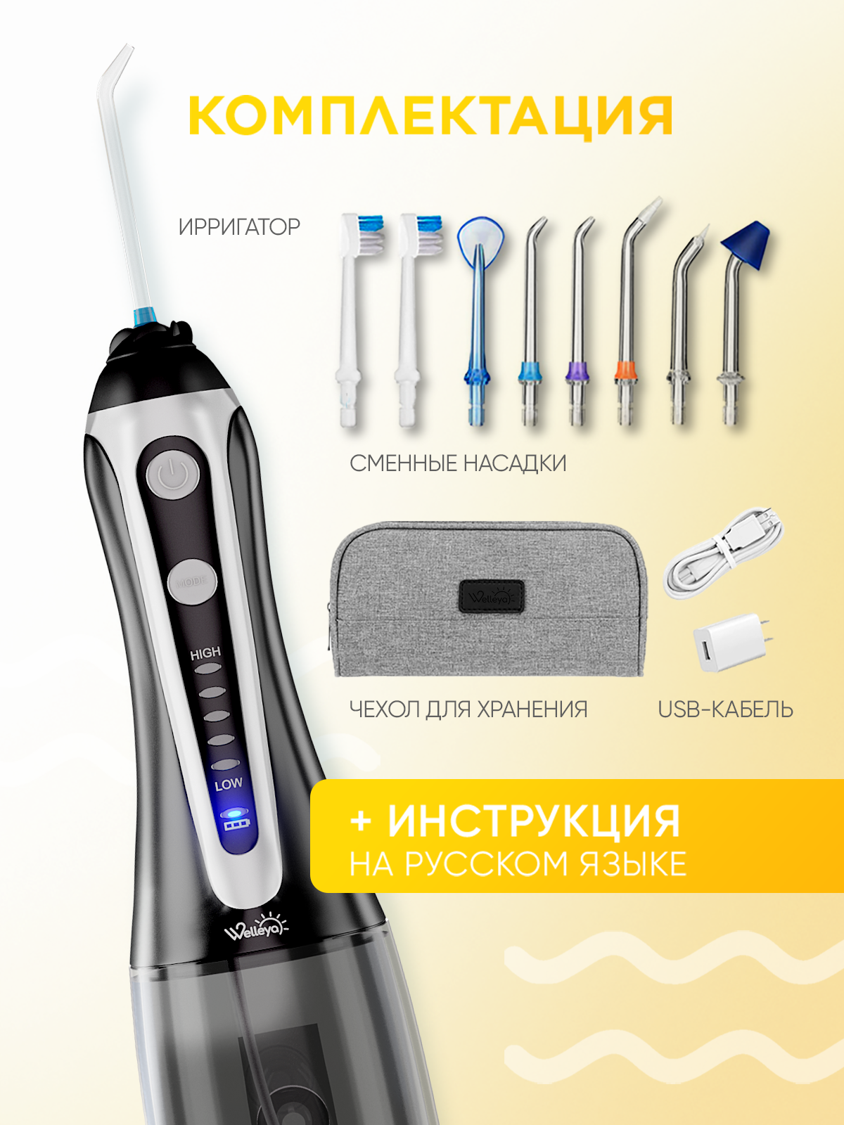 Ирригатор для зубов портативный компактный набор с насадками интересное: