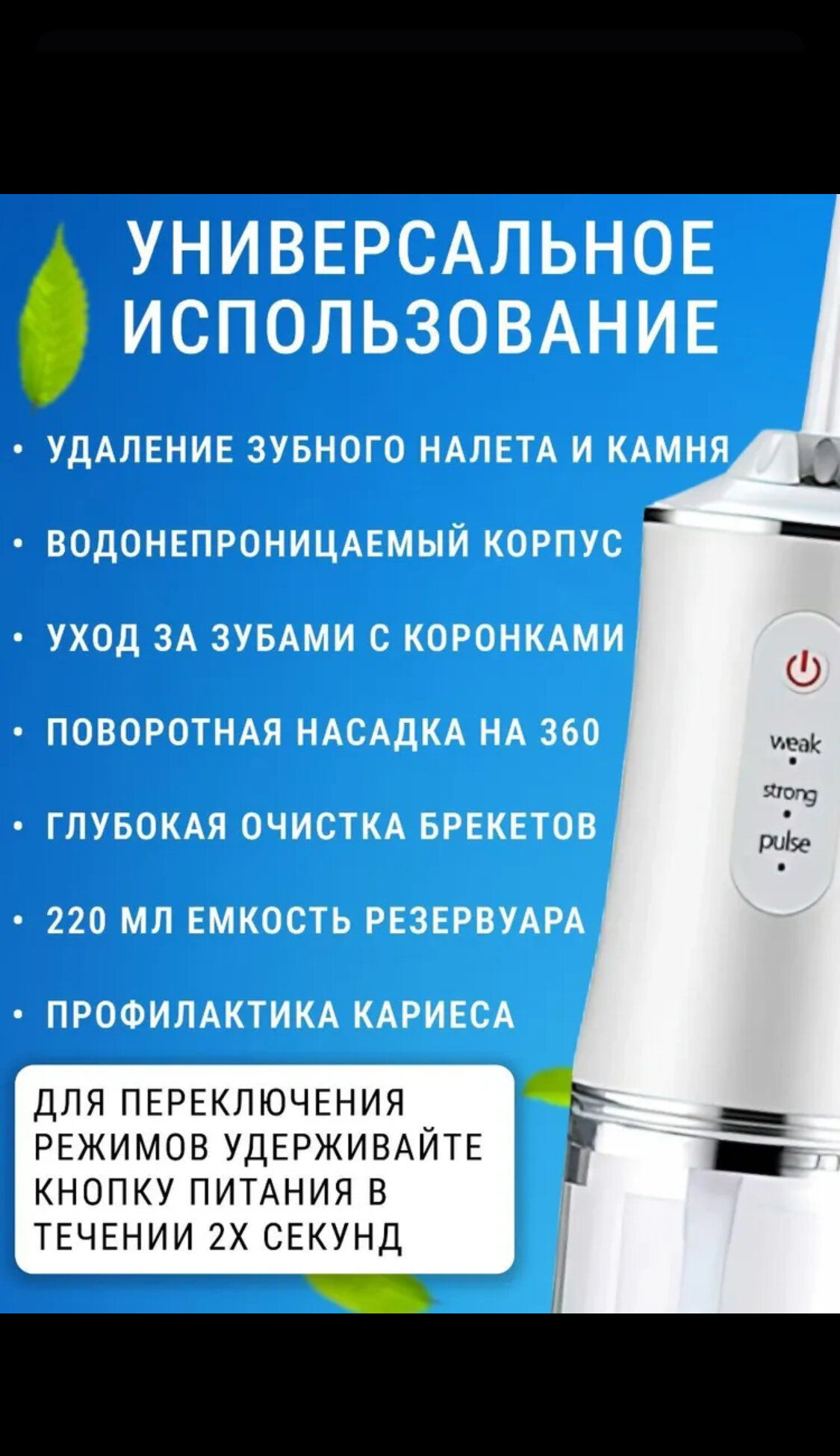 Ирригатор полости рта с увеличенным резервуаром. Портативный. интересное: