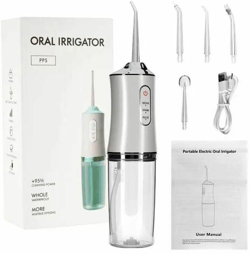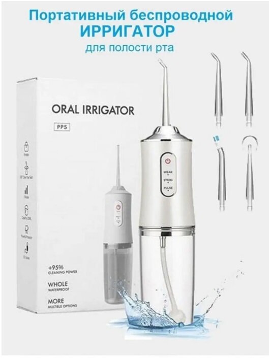 Ирригатор HQ44 для полости рта с 4мя насадками / Ирригатор полости рта портативный с насадками / Иригатор для зубов PPS Trip / Ирригатор полости рта/белый интересное: