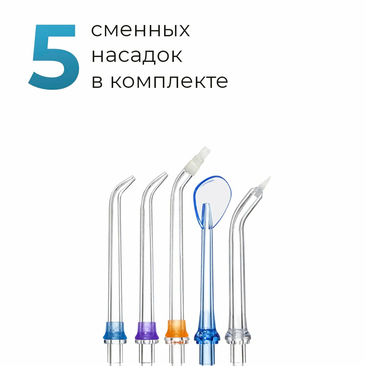 Ирригатор для полости рта REVYLINE RL 450, портативный, емкость резервуара 0,24 л, 5 насадок, белый